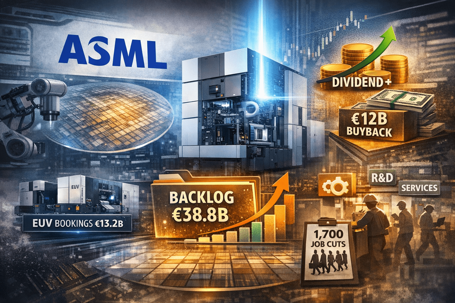 ASML also announced 1,700 job cuts (roughly 4% of the workforce), mostly in leadership roles, to reduce organizational complexity.